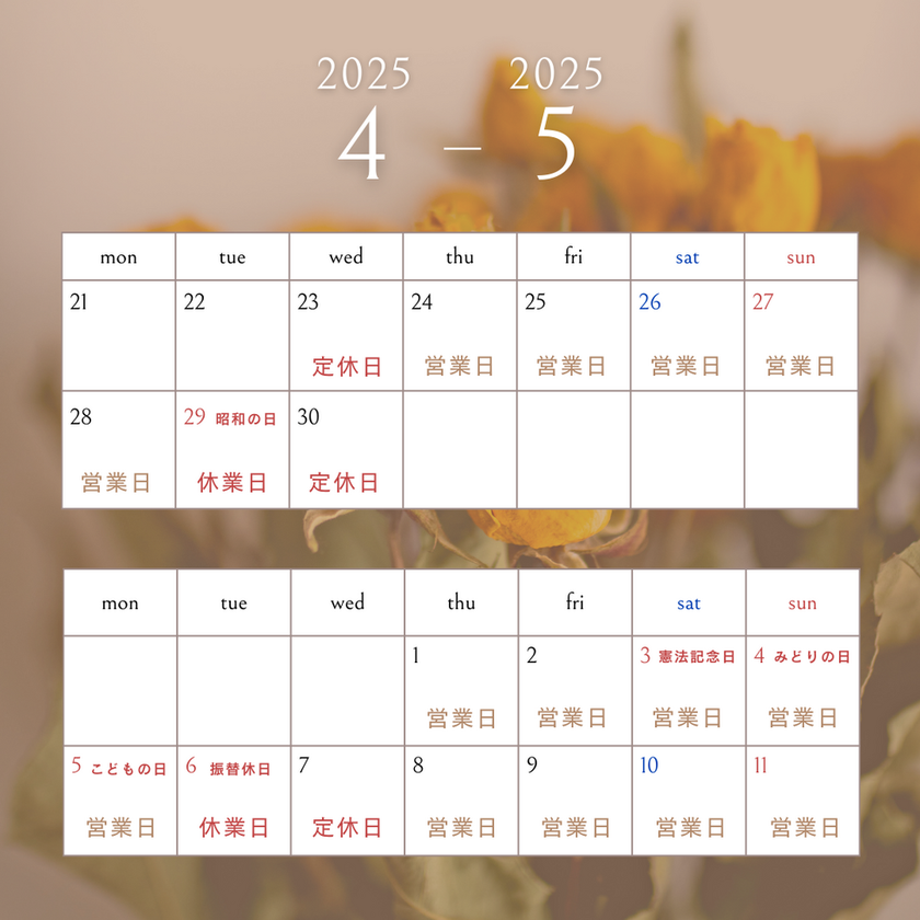 ゴールデンウィークの営業日のお知らせ
