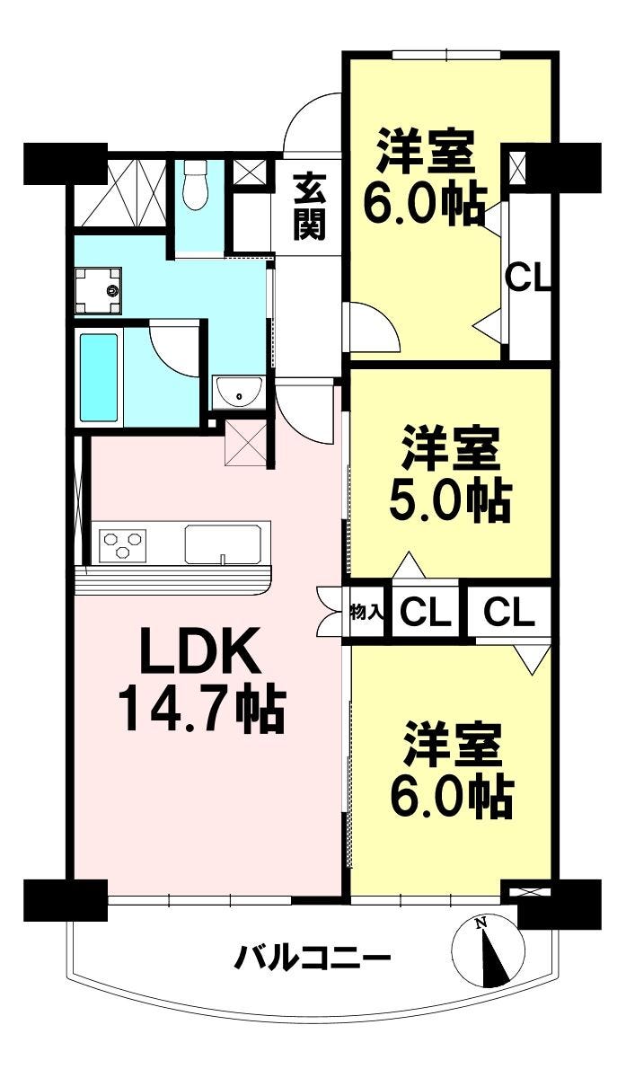 | 主要採光 | 南向 | バルコニー | 南向8.69㎡ |